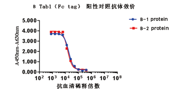 B-1(Fc tag)、B-2(his tag)抗原阳性对照抗体效价检测结果
